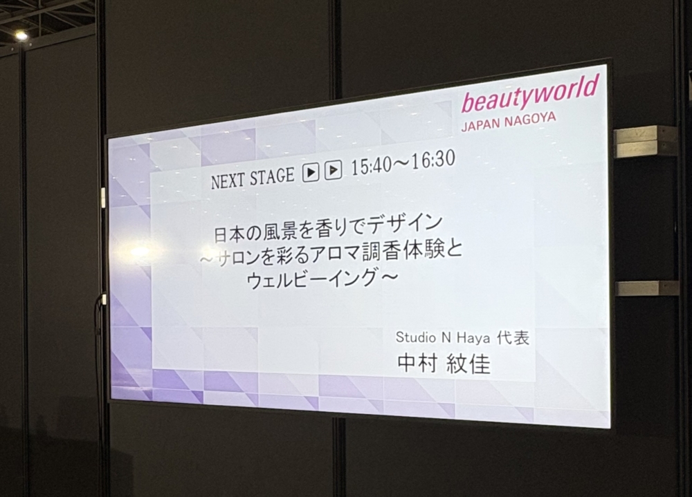 セミナーでは、「日本の風景を香りでデザイン~サロンを彩るアロマ調香とウェルビーイング」をテーマに、私たちが大切にしている香りづくりの背景や想いをご紹介。