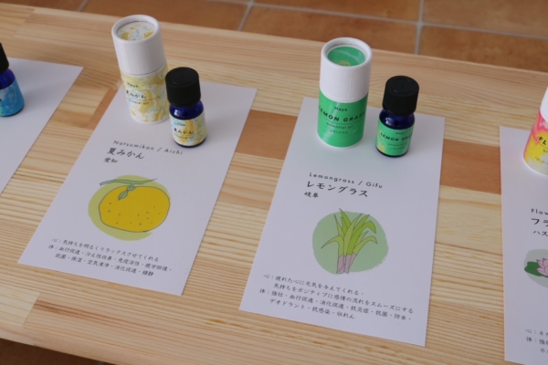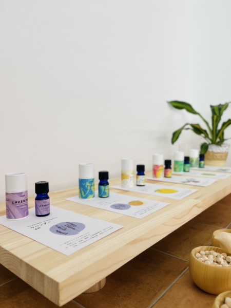 香りは、地元・愛知県産を中心とした精油をご用意し、季節ごとに香りを変えながら、